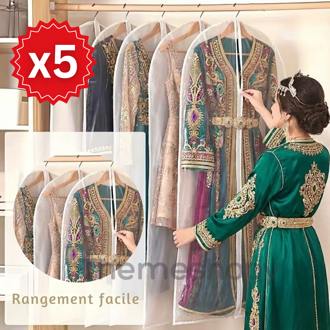 هل تعبت من فوضى الخزانة وتجعد ملابسك المفضلة؟ هذا الطقم المتكامل من أغطية الملابس هو الحل الذي تبحث عنه. صُممت هذه الأغطية الشفافة بعناية لتوفر لك رؤية واضحة لمحتوياتها دون الحاجة لفتحها، مع حماية فائقة ضد الغبار، الرطوبة، والعث.